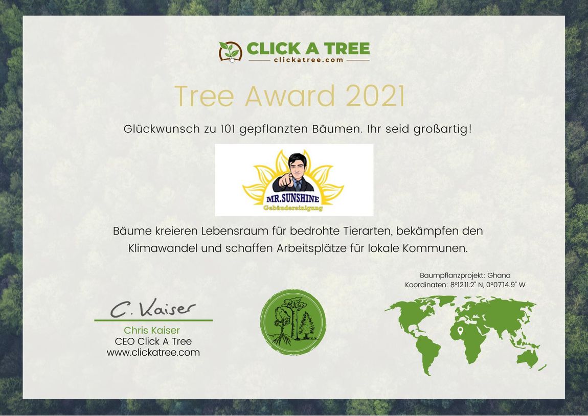 Für jede 150 Stunden Reinigungszeit pflanzen wir einen Baum für die Umwelt
